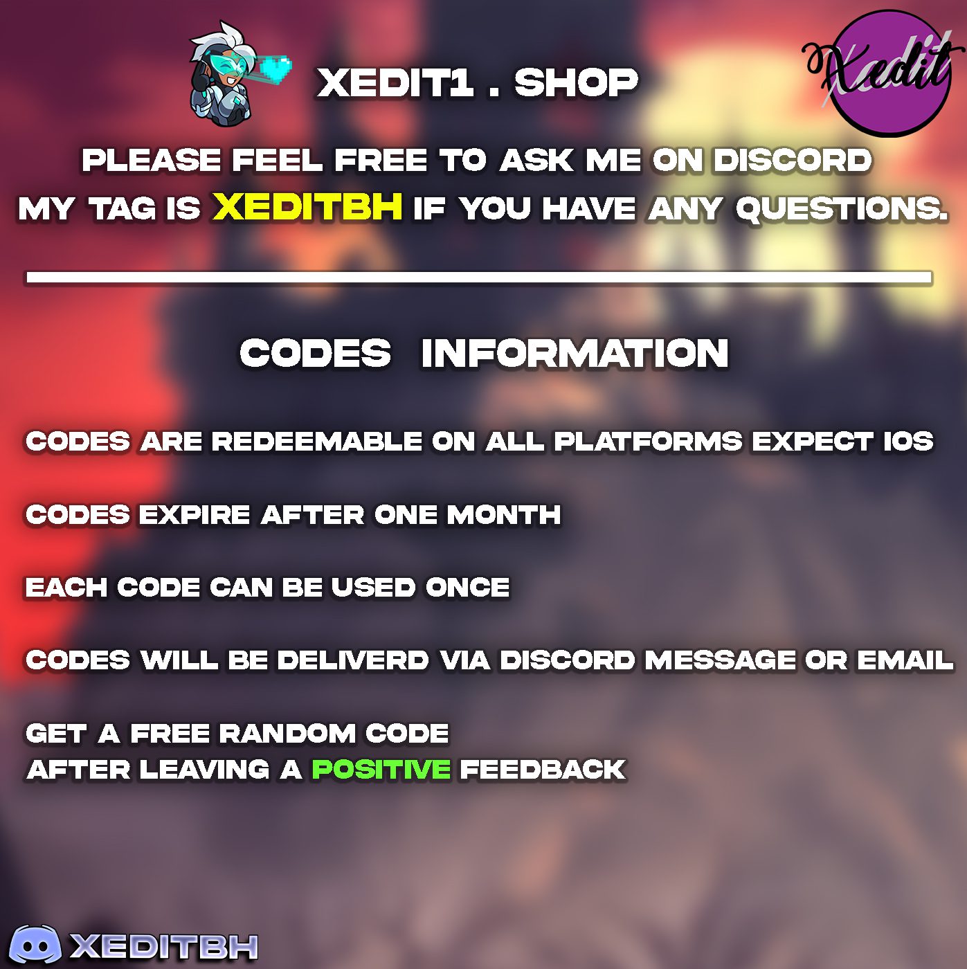 Please feel free to contact me on discord my tag is xeditbh if you have any questions.